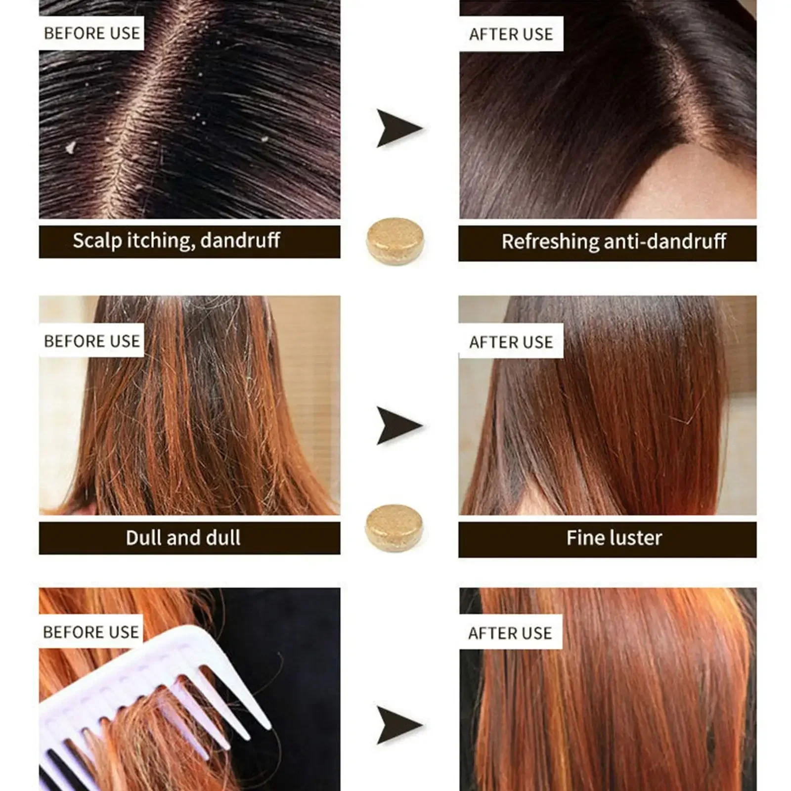 Fácil de usar --- cabelo molhado. Aplique o Shampoo em barra diretamente nos cabelos molhados e massageie suavemente no couro cabeludo por 2-3 minutos. Enxágue a espuma com água morna.